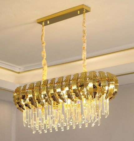 299-260 Люстра длина 90 см, ширина 35 см, выс. 35 см(х1)Кристаллы, нержавеющая сталь (арт. 299-260)