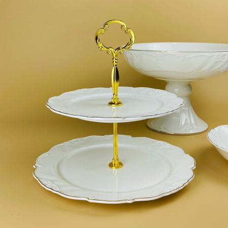 109-261 Двухъярусная этажерка КРОКУС ЗОЛОТО в под.уп.(х12)Фарфор (арт. 109-261)