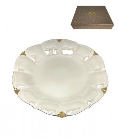 Изысканная коллекция посуды из фарфора, с перламутровым напылением и золотыми веерными вставками. Перламутровый люстр двух цветов: белый с легким серебрянным свечением и цветной с радужеыми переливами. Коллекция прекрасно смотрится на столе, золото и перламутр играют даже при небольшом освещении помещения. С состав входят: тарелки, салатники, блюда, менажницы, наборы для специй и сервировки. Каждый предмет упакован в стильную высококачественную коробку.