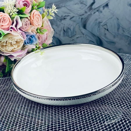 Коллекция посуды из фарфора MULTICOLOR представляет собой посуду для разной сервировки стола, покрытая плотной цветной глазурью разного цвета от нежных пастельных тонов до черной. Коллекцию отличает широкая отделка золотом, наличие золотых декоративных элементов. Широкий ассортимент: тарелки, салатники, этажерки, блюда, сервизы и прочее. Размеры
