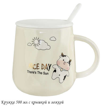 315-055 Детская кружка 420мл с крышкой и ложкой в под.уп. (х36)Фарфор (арт. 315-055)