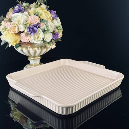 Посуду можно использовать в духовке и микроволновой печи. Пища при этом сохраняет естественный вкус и аромат. Посуду можно мыть в посудомоечной машине, а качественная и прочная глазурь защищает блюда от царапин ножа и вилки.