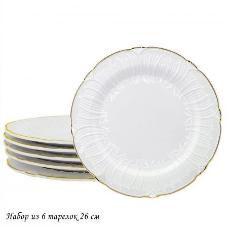 Коллекция посуды ORCHIDEA выполнена из белого фарфора, нежный цветочный орнамент, оплетает объемным рисунком ободок тарелок, борт салатников и других предметов. Нежная обводка золотом добавляет изящества изделиям.