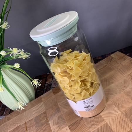 Баночка хранения специй, сахара, кофе изготовлена из стекла, крышка из цыетного пластика с силиконовым уплотнителем, объем 1400 мл.