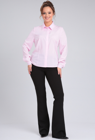 Блузка элегантная прямого силуэта, из приятной к телу ткани софт, дышащая. Воротник на стойке По переду планка с потайной застёжкой на петли и пуговицы. По спинке застрочены вытачки. Низ блузки прямой. По боковым швам раз- резы. Рукав втачной . По низу рукава заложены складки и пришит манжет, который застёгивается на петли и пуговицы.