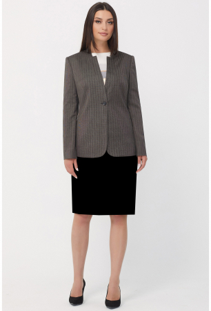 Стильный однобортный жакет полуприлегающего силуэта. Перед с глубоким фигурным V-образным вырезом горловины, с функциональными карманами с листочкой, с застёжкой на петлю-пуговицу и с фигурной линией борта. Рукава втачные двухшовные с декоративными шлицами и отделочными пуговицами. Воротник-стойка. На подкладке.