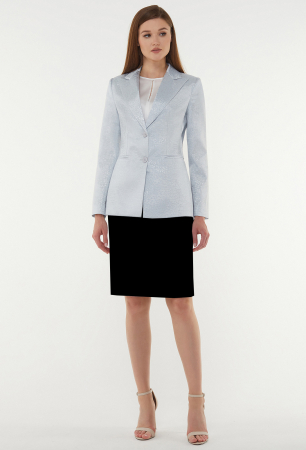 Стильный однобортный жакет полуприлегающего силуэта. Перед с глубоким V-образным вырезом горловины, с застёжкой на две петли-пуговицы и с двумя функциональными карманами с рамками. Рукава втачные двушовные с декоративными шлицами и отделочными пуговицами, на подкладке.