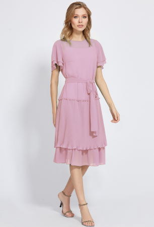 Чрезвычайно нежное платье прямого силуэта, выполненное из мягкого, приятного, однотонного шифона. Привлечь особое внимание к себе помогают оборки, верхняя из которых выполнена с помощью мелкой плиссировки и романтичные двухслойные рукава «флаттер». В среднем шве спинки обработана застёжка на навесную петлю и ювелирную пуговицу. Платье комплектуется с нижним платьем из комфортной 100% вискозной ткани. Для создания приталенного силуэта предусмотрен пояс-завязка, красиво подчёркивающий женскую талию.