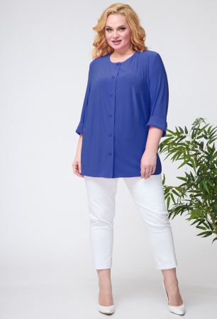 Блуза женская из трикотажного полотна (масла). Модель прямого силуэта по полочке идет рельеф и выточка по груди. Рукав 3/4 длины с отложным манжетом. По боковым швам разрезы, низ фигурный. Длина спинки: (62-66)- 80см. Длина рукава: (62-66)- 45см.