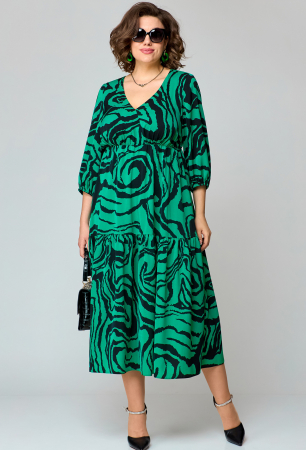 Платье женские нарядно повседневное с подрезом под грудью, расширенное к низу, выполнено из плательной ткани. Вырез горловины V-образный, рукав втачной 7/8 по низу собран на резинку. По низу платья широкий волан собранный на сборку. Декором платья служит дизайн основной ткани.
