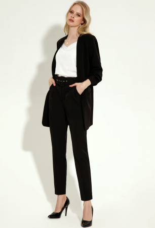 Стильный модный жакет в стиле "кэжуал". Это повседневный удобный и практичный жакет, который отлично сочетается как с джинсами, так и с брюками. Жакет удлиненный, без застежки, рукава длиной ниже локтя. По переду имеются карманы. Спинка со средним швом, который заканчивается шлицей. Жакет на подкладки.