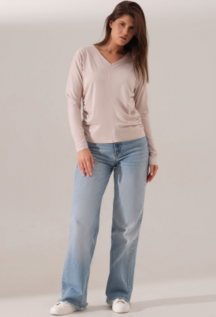 Джемпер женский – универсальное решение для базового гардероба. Джемпер в V-образным вырезом. По бокам вставлена резинка.
