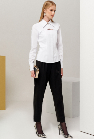 Блузка с длинным рукавом - это классика. Силуэт приталенный. Базовая блузка без рисунка и карманов подойдет для холодного лета и теплой осени, зимы и весны. Блузка из хлопковой ткани с оригинальным воротником.
