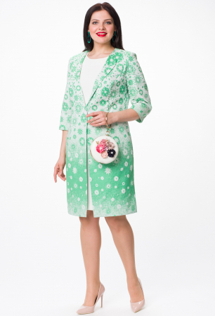 Кардиган из турецкого жаккарда без подкладки. Имеет отложные борта и застежку на одну пуговицу. Рукав втачной.