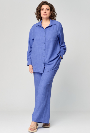 Костюм состоящий из рубашки и брюк выполнен из однотонной ткани.