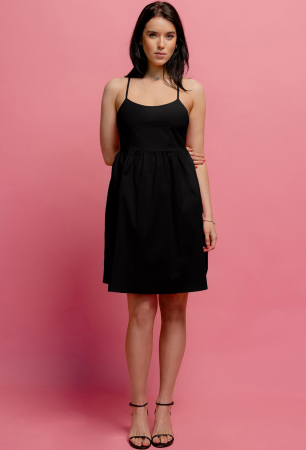 Платье сарафан молодежное приталенного силуэта из ткани с рисунком печатным или однотон-хлопок. На бретелях, без застежки, отрезное по талии,с карманами, с подкладкой по лифу.