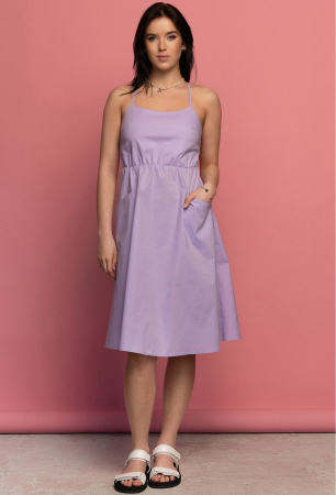 Платье сарафан молодежное приталенного силуэта из ткани с рисунком печатным или однотон-хлопок. На бретелях, без застежки, отрезное по талии,с карманами, с подкладкой по лифу.