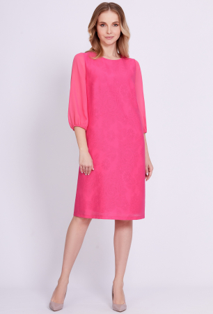 Праздничное платье всегда отличается от повседневного: капелька флирта, крупинки романтики, немного самоуверенности и бездна вкуса. И тому пример данная модель прямого силуэта с укороченными полупрозрачными рукавами, со сборкой по низу, собранной на узкую эластичную тесьму. Платье сшили из красивой лёгкой ажурной ткани с цветочным дизайном, шифона в тон и тонкой приятной к телу 100% вискозной ткани. Для удобства в эксплуатации, по спинке предусмотрена каплевидная застёжка на навесную петлю и потайную пуговицу.
