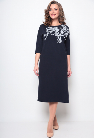 Нарядное и одновременно простое, вливающееся в ежедневную жизнь любой женщины платье, выполнено из приятного к телу трикотажа. Комфортный, прямой силуэт мягко сядет по фигуре и не будет сковывать ваших движений. Платье имеет спущенный рукав длиной 7/8. Украшением платья служит объемная вышивка по переду, а также боковой разрез. Вырез горловины "лодочка". Платье прекрасно сочетается с любыми аксессуарами и разной по стилю обувью. Длина рукава от горловины 50 (+/- 1 см). Длина изделия по спинке 115 (+/- 1 см). Изделие подойдёт на рост 170 см.