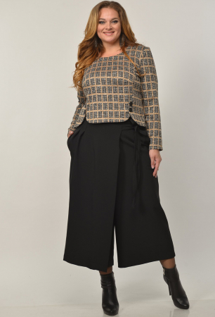 Стильный, удобный, практичный женский комплект. Состоит из джемпера и юбки-брюк(кюлоты). Джемпер из ткани хорошего качества на трикотажной основе. Длина джемпера по спинке от плеча - 59 см, по переду 55 см. Рукав - 61 см. Модные юбка -брюки(кюлоты) длинной 84 см, по переду брюк планка, переходящая в длинный пояс.