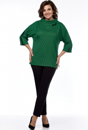 Комплект Блузка и брюки. Блузка: длина 65 см, длина рукава ? 42 см (летучая мышь). Отделка кожа. Застежка на пуговку по спинке.