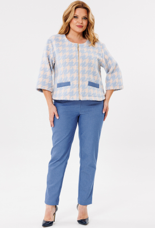Удобный женский брючный комплект. Данный деловой комплект станет отличным выбором для офисных работников и всех, кто ценит комфорт и стиль. Изделие состоит из жакета и брюк. Твидовый жакет прямого полуприлегающего силуэта с втачным рукавом 3/4. По переду изделия накладные клапаны. Жакет на молнии не только функционален, но и добавляет стильный акцент в любой образ. Этот теплый твидовый жакет создан для повседневной носки и будет радовать вас мягкостью и комфортом, даже в самые холодные дни. Брюки выполнены из хлопковой ткани средней плотности садятся по фигуре длиной 7/8. К низу заужены, спереди на молнии с гульфиком, высокая посадка, на притачном поясе с резинкой по бокам, от пояса к боковым швам косые функциональные карманы. Благодаря своему элегантному дизайну, данный костюм plus size станет незаменимым элементом вашего гардероба и поможет создать множество образов.