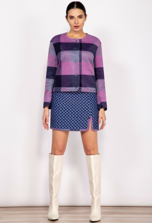 Стильный и теплый костюм. Жакет прямого силуэта с нагрудной вытачкой из бокового шва и спущенной линией плеча. Рукав втачной двухшовный. Застежка центральная с закругленными краями борта на 5 кнопок. Перед с настрочными карманами. Вдоль горловины, борта, низа изделия и рукава, и вдоль верхнего края кармана притачана планка из отделочной ткани.