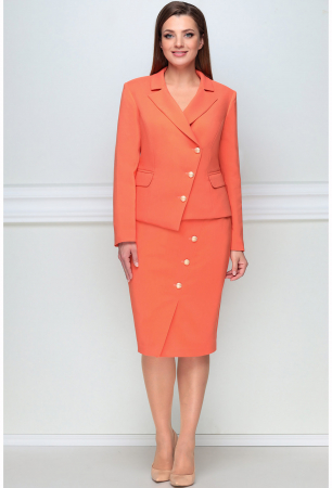 Асимметрия как модный тренд сейчас очень актуальна. И если на симметричном образе наш глаз отдыхает и здесь все понятно и привычно, то асимметрия всегда привлекает внимание, создает динамику, придаёт образу остроту. Комплект женский состоящий из жакета и юбки. Жакет полуприлегающего силуэта на подкладке. По переду и спинке фигурные рельефы,в рельефах переда функциональные карманы в рамку с клапаном. Застежка асимметричная (сверху двубортная,снизу однобортная) бортовая застегивающаяся на петли и декоративные пуговицы. Воротник пиджачного типа. Рукав втачной двухшовный длинный. Низ изделия фигурный с выступом у застежки. Юбка полуприлегающего силуэта на подкладке зауженная к низу на обтачке( без пояса), По переду асимметричный подрез имитирующий застежку с петлями и декоративными пуговицами. В подрезе переда шлица, застежка на потайную тесьму-молнию в левом боковом шве.