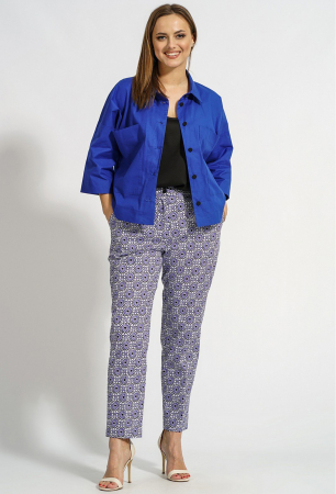 Жакет оверсайз, рукав 3/4; блузка-топ на бретелях; брюки прямые, в поясе по спинке эластичная тесьма.