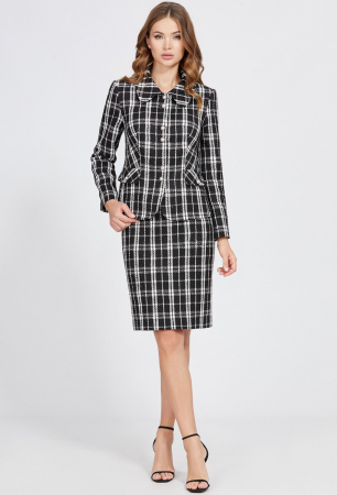 Юбка-карандаш из мягкого фактурного твида в элегантном и стильном исполнении. Привлекает внимание утончённым клетчатым принтом в черно-белой цветовой гамме, добавляющим классику в повседневный гардероб. Модель средней длины, выполнена на подкладке, что обеспечивает комфорт при носке. В заднем шве предусмотрена потайная молния и небольшая шлица для удобства движений. Эта юбка отлично сочетается как с деловыми, так и с повседневными ансамблями, подчёркивая изысканный вкус своей владелицы.