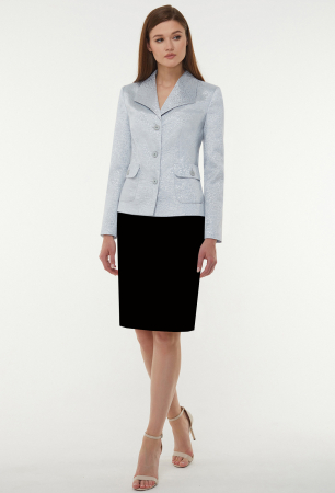 Укороченный однобортный жакет полуприлегающего силуэта с широкими фигурными лацканами выглядит эффектно. Оставив крой полуприлегающей модели максимально лаконичным, жакет дополнили яркими деталями, такими как: красивые отделочные пуговицы и небольшие накладные карманы с клапанами. Рукава втачные двухшовные, воротник «Апаш». На подкладке.