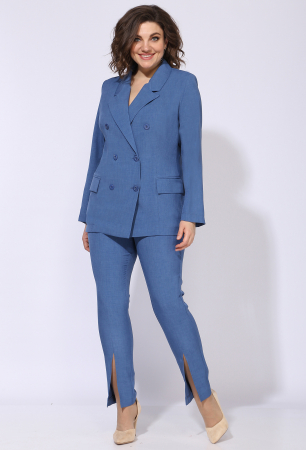 Брюки выполнены из однотонной ткани. Брюки полуприлегающего силуэта, зауженные к низу. По передним половинкам выполнены карманы и рельефы, в нижней части которых обработан подрез. В среднем шве переда застежка на молнии. Брюки на притачном поясе с эластичной тесьмой.