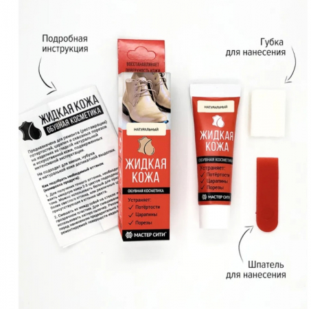 В комплект входит губка для нанесения жидкой кожи на поверхность.