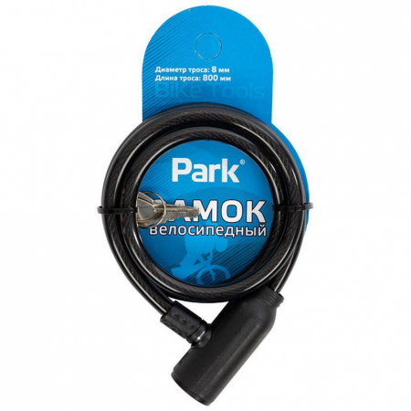 Замок велосипедный тросовый Park / Парк корпус цинковый сплав и металл, диаметр 8мм, длина 800мм, цвет черный, противоугонный трос, защита от кражи.