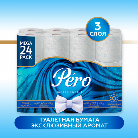 Туалетная бумага PERO TALCUM 3сл 24рул, белый цвет прокрасом (арт. 7116)
