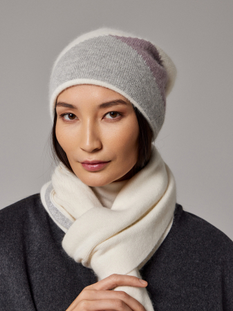 Шапка трехцветная двойная с пухом енота,с люрексом и пайетками, без флиса.