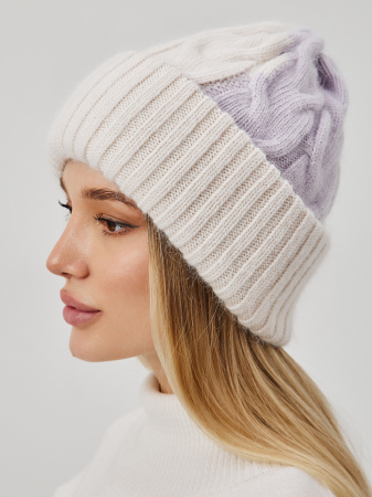 Шапка двухцветная на флисе с ангорой, с отворотом. Комбинированная вязка.