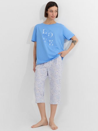 Стильная пижама женская с бриджами прямого кроя и джемпером с коротким рукавом изготовлена из высококачественного мягкого хлопка. Красивый насыщенный цвет и оригинальный принт делают модель интересной и привлекательной. Пижама с бриджами — отличный вариант женской одежды для сна, домашних дел, а также для отдыха дома. Мягкий, эластичный хлопковый материал гипоаллергенен, подойдет для нежной кожи. В линейке много интересных расцветок, широкий размерный ряд, есть актуальные модели plus-size пижам женских для девушек с пышными формами. Домашний комплект с бриджами от Mark Formelle приятно получить как подарок на праздники, так и просто без повода!