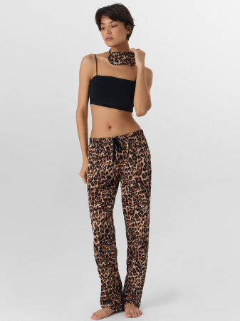 Брюки прямого силуэта, немного заужены к низу. Пояс цельнокроеный с резиной внутри 30RV. По центру пояса пробиты петли, протянута хб тесма 10мм. Низ брюк обработан в подгибку.