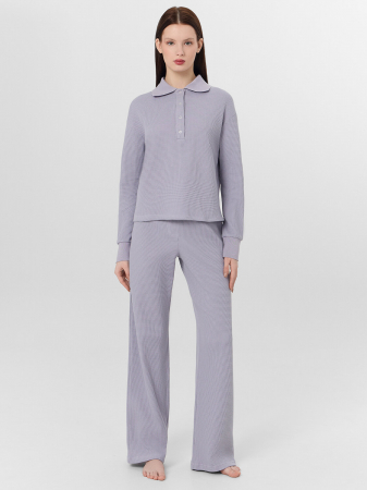 Аккуратная обработка низа брюк обеспечивает опрятный вид и сохранение формы после множества стирок. Нежный розовый цвет добавляет образу теплоты и уюта, делая эти брюки отличным выбором для спокойных вечеров, утреннего отдыха или занятий любимыми делами в стенах дома.