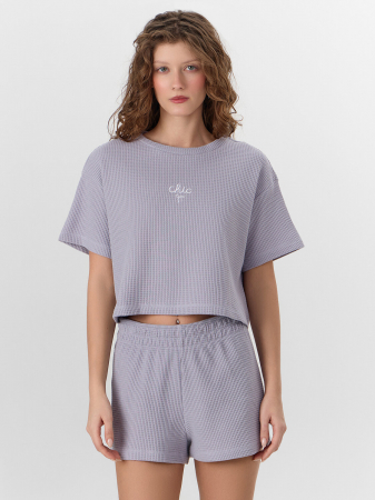 Трендовый женский комплект из натурального хлопкового полотна. Футболка свободного силуэта, укороченная, с круглым вырезом. Шорты свободные, короткие, с эластичнйо тесьмой в поясе. Рекомендуем для сна, отдыха и домашних дел