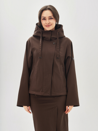 Жакет выполнен из ткани высокого качества, что делает ее приятной на ощупь, а внутренняя подкладка из вискозы с полиэстером обеспечивает комфорт и удобство при ношении. Застежка на молнию и кнопки. Капюшон затягивается на кулиску. В расстегнутом виде выглядит как лацканы. Карманы: широкие листочки дополнены функциональными молниями. Длина рукава регулируется отворотом. Кулиска по низу жакета позволяет уменьшить его объем. Прямой силуэт изделия мягко скрывает недостатки фигуры и подчеркивает достоинства. Благодаря средней длине, эта модель подходит как для полных, так и для стройных женщин.Сочетается с юбкой Дона