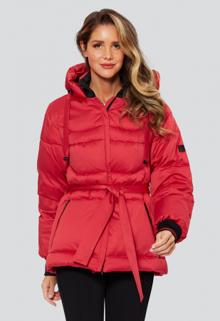 Модная женская стеганая куртка комфортной длины от российского производителя D’imma Fashion Studio прямого силуэта из яркой ткани "мембрана" с водоотталкивающей пропиткой, утепленная СинтеПухом. Декоративная лаконичная стежка делает ее интересной и стильной. За дополнительную защиту от непогоды отвечают воротник-стойка и несъемный капюшон со шнурком, регулирующим объем капюшона. Модель с застежкой на двухзамковую молнию и внешним ветрозащитным клапаном. Рукава с трикотажной манжетой контрастного цвета, помогающей регулировать длину рукава. Внутри кулиски по талии и низу куртки, регулирующие объем и теплосохранение. Модель с просторными прорезными карманами на молниях. Пояс в комплекте.