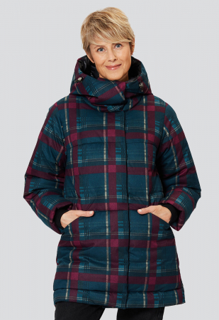 Капюшон и подборта отделаны такнью-компаньоном, в тон которой подобран подклад.