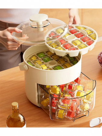 Форма для льда — это удобный и функциональный аксессуар для создания кубиков льда и других замороженных продуктов. Она состоит из контейнера, формы с 40 ячейками и крышки, которая идет в комплекте.