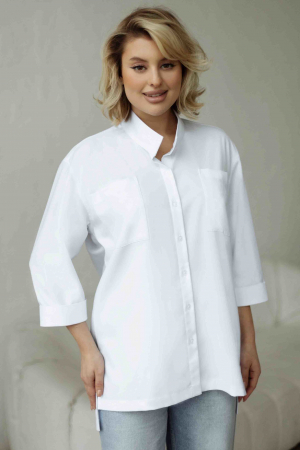 Широкая декоративная подгибка по низу, удлиненная спинка, накладные карманы, выразительные стойка и манжета рукава, выделяют эту свободную рубашку .