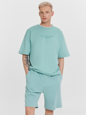 Стильный мужской комплект, состоящий из футболки и шортов. Выполнен из хлопкового полотна с добавлением полиэстера, который увеличивает прочность и долговечность одежды. Футболка силуэта оверсай, длиной до линии бедер. Спущенная линия плеча дарит свободу движений. Шорты прямые и свободные, длиной до колена, с эластичной тесьмой в поясе и удобными боковыми карманами. Регулировать ширину в талии можно с помощью шнурка-завязки. Рекомендуем!