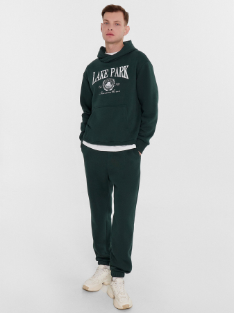 Комплект выполнен из трикотажного полотна футер. Анорак прямого силуэта, перед и спинка цельнокроеные. Круглый вырез горловины, с капюшоном.