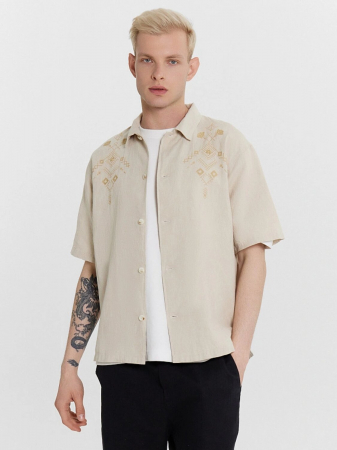 Мужская рубашка из льняной коллекции Mark Formelle — стильное и универсальное решение для тех, кто ценит комфорт и классический дизайн. Прямой, свободный силуэт обеспечивает удобную посадку и свободу движений, делая модель идеальным выбором для повседневной носки и непринужденных образов. Короткие рукава позволяют чувствовать себя комфортно в теплую погоду, а центральная застежка на петли и пуговицы добавляет практичности и элегантности в общий дизайн. Функциональный накладной карман на груди — удобный акцент, который делает рубашку еще более практичной. Спинка с кокеткой подчеркивает аккуратный крой, обеспечивая дополнительный комфорт и улучшенную посадку по фигуре. Разрезы по низу боковых швов придают модели легкость, а обработка нижних срезов и рукавов швом вподгибку делает изделие аккуратным и долговечным. Рубашка выполнена из натуральных материалов — сочетание льна и хлопка дарит приятные тактильные ощущения, обеспечивает отличную воздухопроницаемость и комфорт в течение всего дня. Идеальный вариант для тех, кто ищет сочетание практичности, стиля и качества в мужском гардеробе!