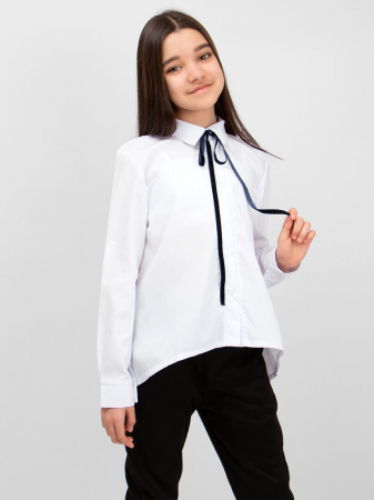 Блузка дополнена бархатной лентой, прекрасно сочетается как с юбкой и сарафаном, так и с брюками, подчеркнет индивидуальный стиль девочки, и разнообразит ее повседневный школьный образ.